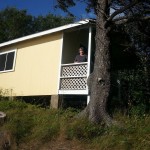 Nous sommes à Troy et soudain, Vicky voit une pancarte et fait demi-tour. En rentrant dans le chemin qui mène aux chalets, nous trouvons qu'ici aussi ça fait pas mal BS. Non, non, on se rend au bout. Nous passons même l'administration afin de voir de "visou" ce qu'ils ont l'air. Demi-tour, nous désirons reprendre le chemin. Mais voilà qu'une dame nous accoste pour nous renseigner qu'elle a un petit chalet jaune, son favori, et qu'elle nous le louerait pour 97$ taxes incluses. OK. On verra bien.